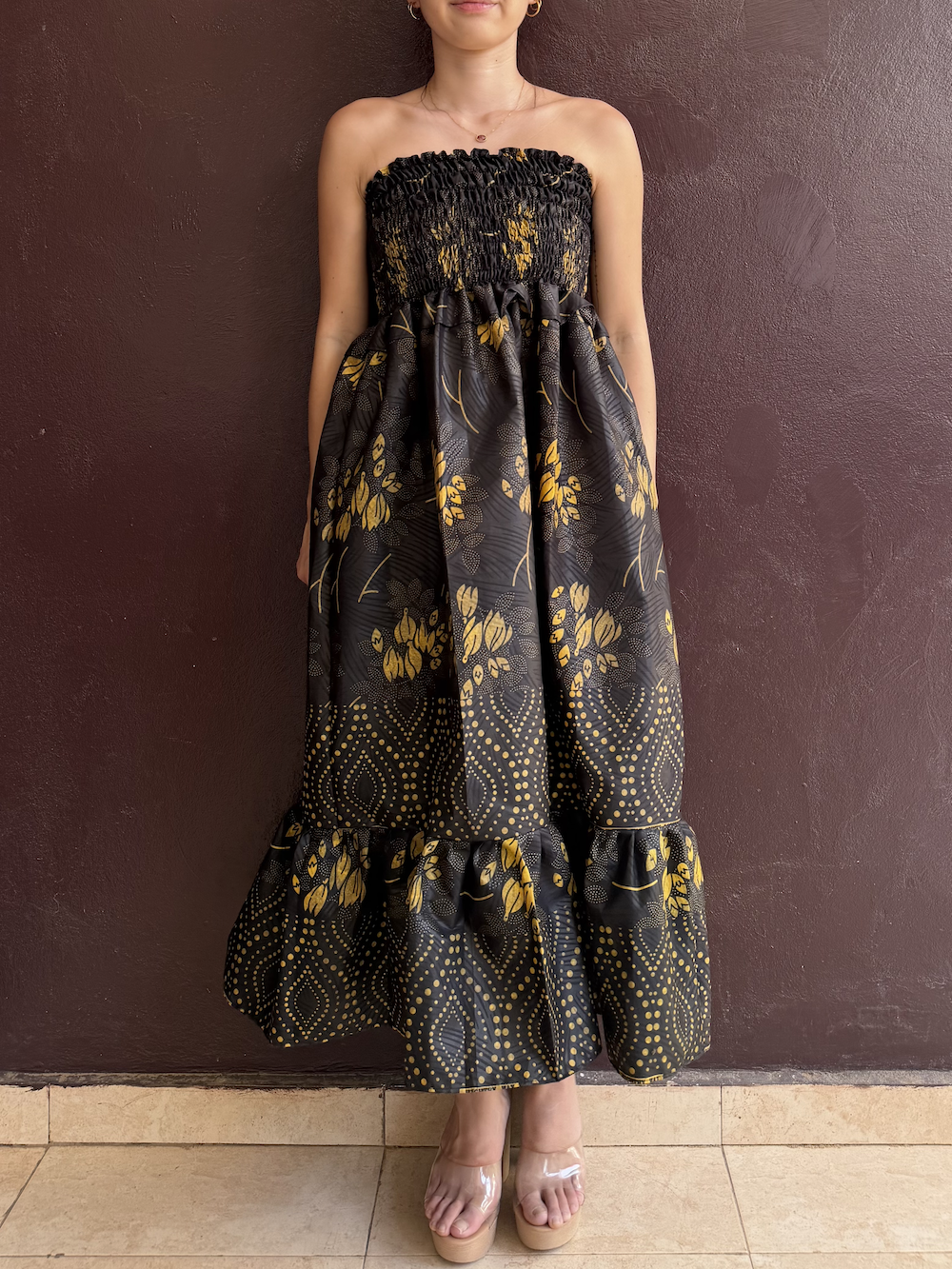 贅沢に生地を使ったLong丈は、Waxプリントの力強いエネルギーを全身で体感できる、まさに「主役」のための一着です。