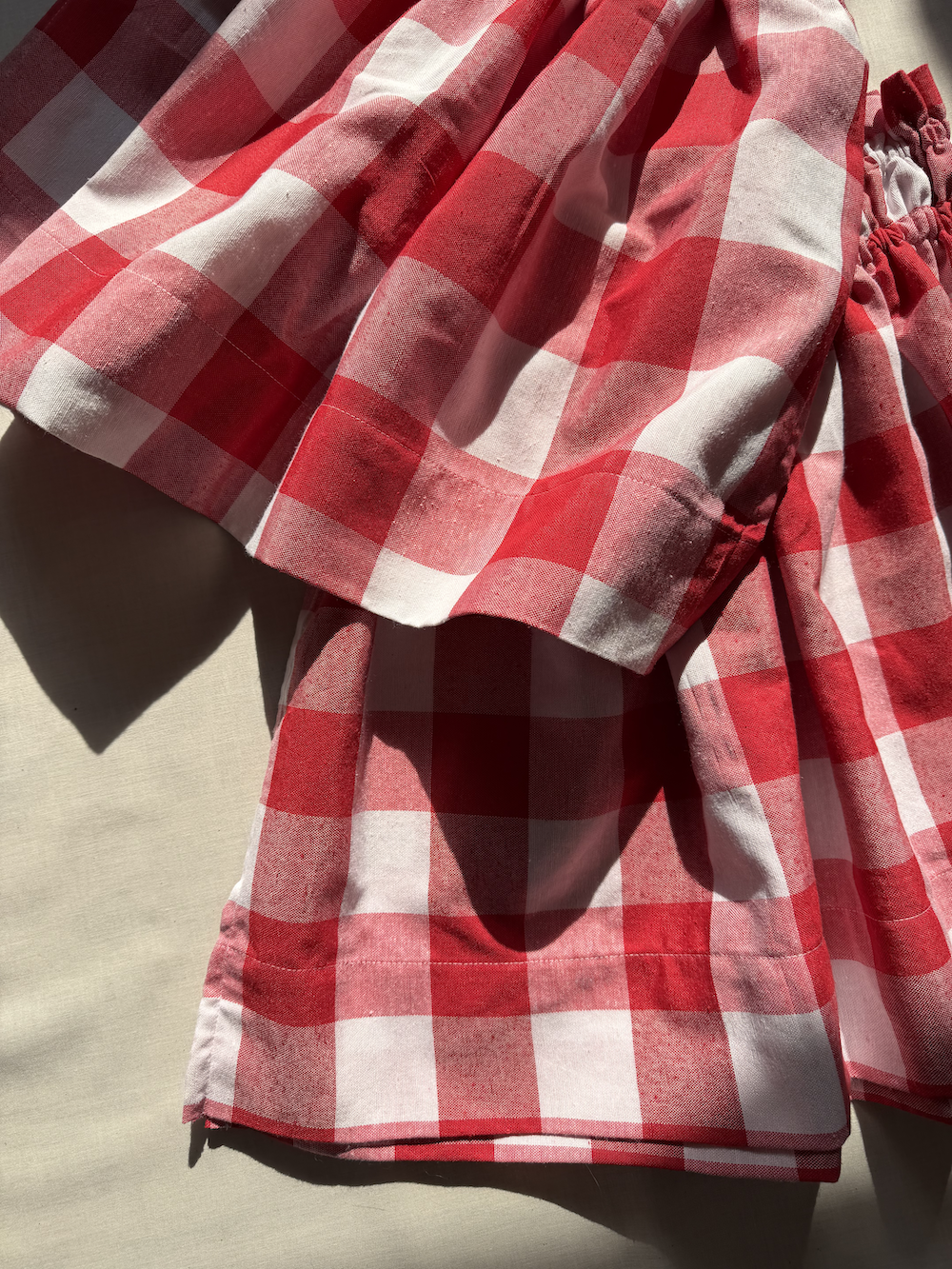 Fabric: Vichy check (a cotton-linen blend that is breathable and comfortable against the skin)