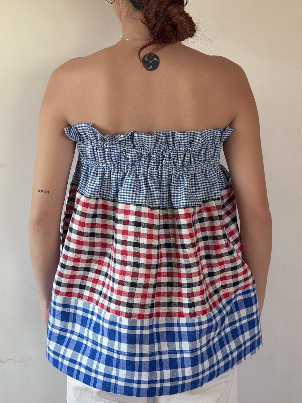 Fabric: Vichy check (a cotton-linen blend that is breathable and comfortable against the skin)