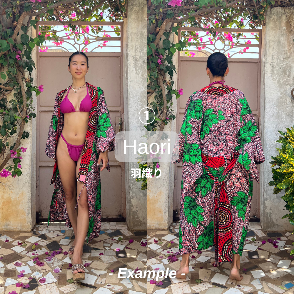 (1) Haori: A style worn like a jacket or robe with the sleeves put through and the front open (for both men and women)