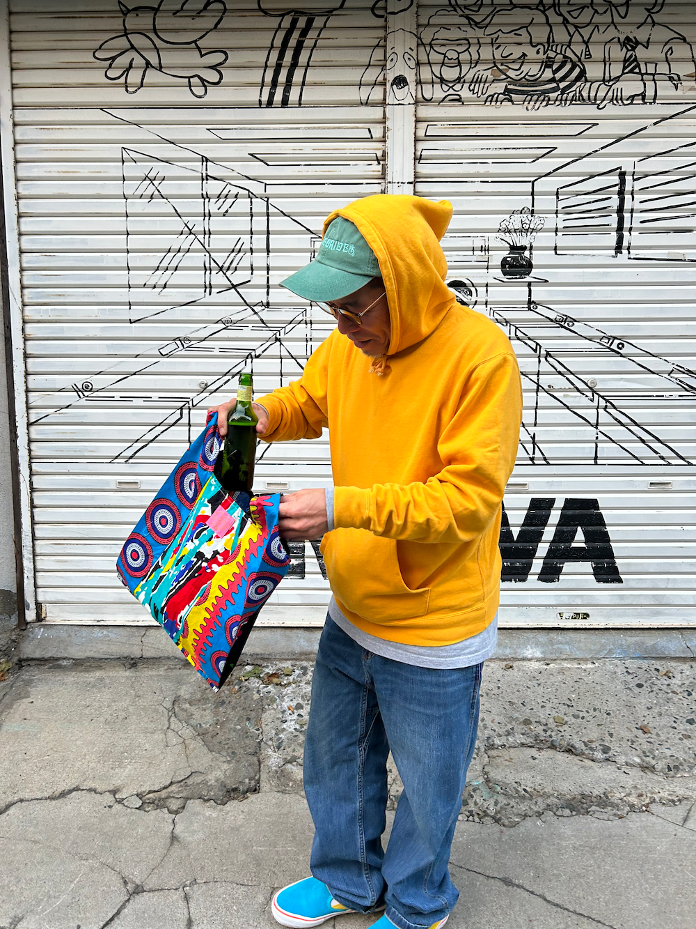 特徴: ろうけつ染めによる大胆な柄。ハリのある厚手コットンで、洗うごとにやわらかく馴染みます。