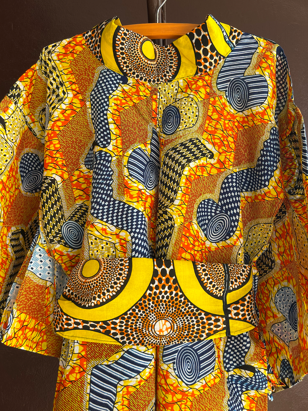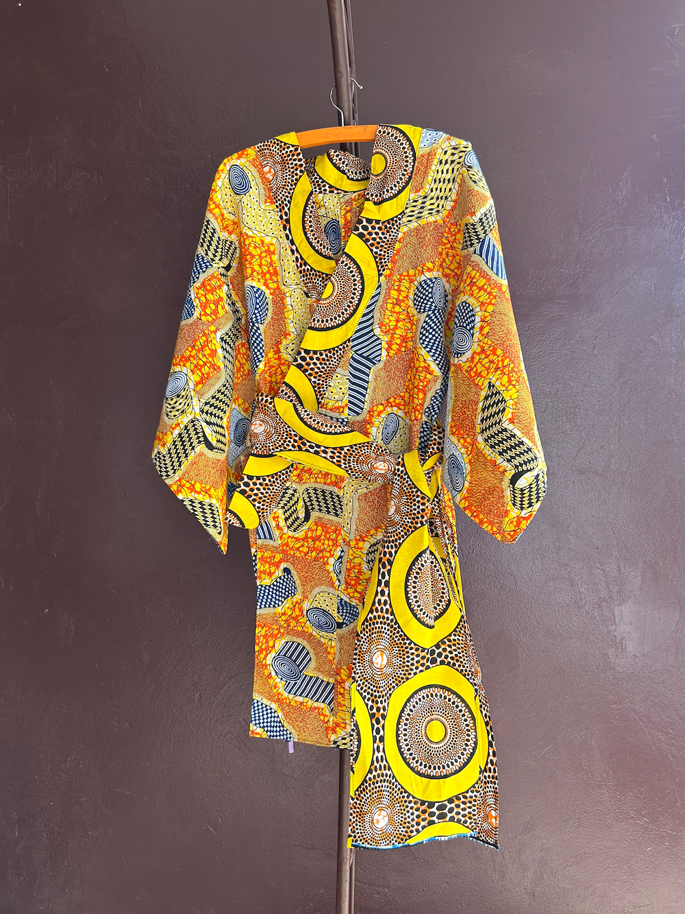 性別を問わず楽しめるシンプルなシルエットで、カジュアルな装いにも馴染みやすく。かろやかに、でも芯のある着こなしを楽しみたいあなたに。 ※帯ベルトは襟と同じ柄で仕立てました。異なるテキスタイルの組み合わせが、スタイリングに奥行きを加えてくれます。