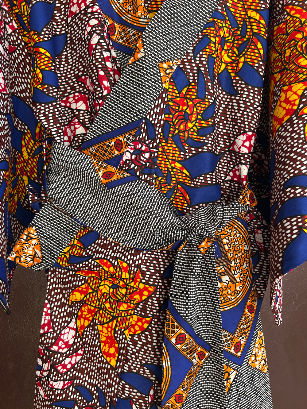 鮮やかで大胆な色彩と力強いパターンは、まさにアフリカンワックスの真骨頂。存在感のある佇まいで、街でも旅先でも「自分らしさ」をナチュラルに引き立ててくれます。